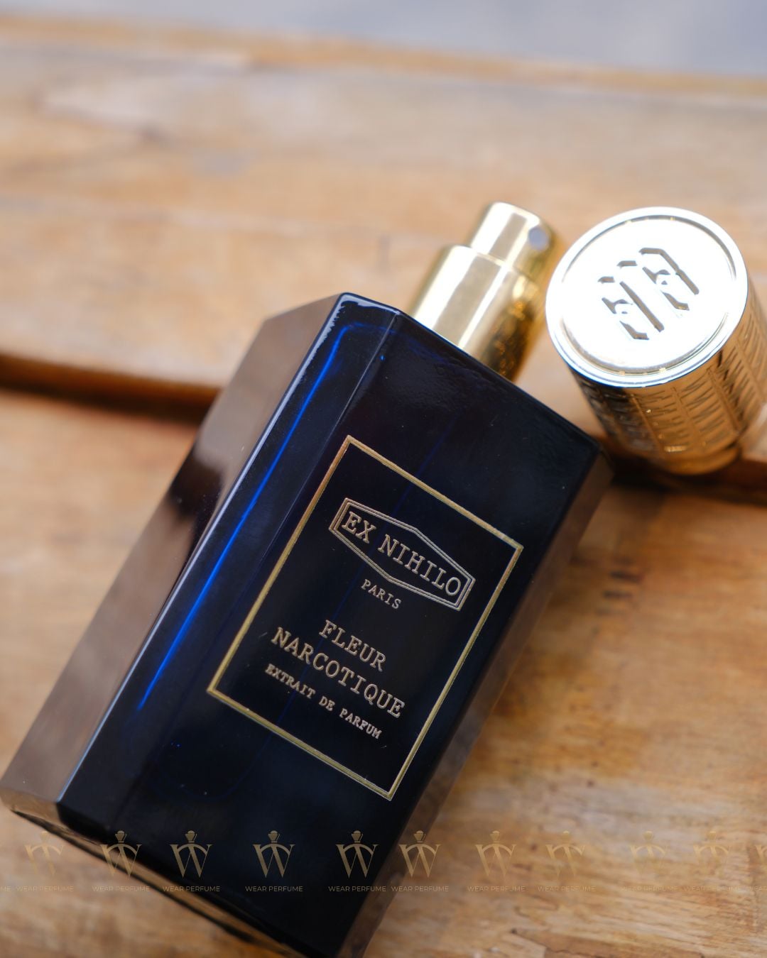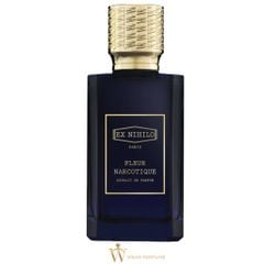 Ex Nihilo Paris Fleur Narcotique Extrait khoác lên mình lớp áo xanh sapphire trầm, bóng và sâu – như một viên đá quý ẩn giấu bí mật bên trong. Hình dáng vuông vức, các góc cạnh được cắt gọt tỉ mỉ tạo nên tổng thể vừa hiện đại vừa cổ điển. Nổi bật trên thân chai là nhãn vàng ánh kim in tên thương hiệu và dòng nước hoa, tối giản mà cuốn hút – đúng chất Ex Nihilo.