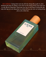 Aire Anthesis là dòng nước hoa mang đến một sự kết hợp tuyệt vời giữa những nốt hương nhẹ nhàng và thanh thoát. Với mùi hương tươi mới, dễ chịu nhưng đầy quyến rũ, Aire Anthesis phù hợp cho những ai yêu thích sự nhẹ nhàng nhưng cũng muốn tạo ra một dấu ấn riêng biệt. Dòng nước hoa này có thể được sử dụng độc lập hoặc kết hợp với các dòng khác từ LOEWE để tạo nên một mùi hương phong phú và đa chiều hơn.