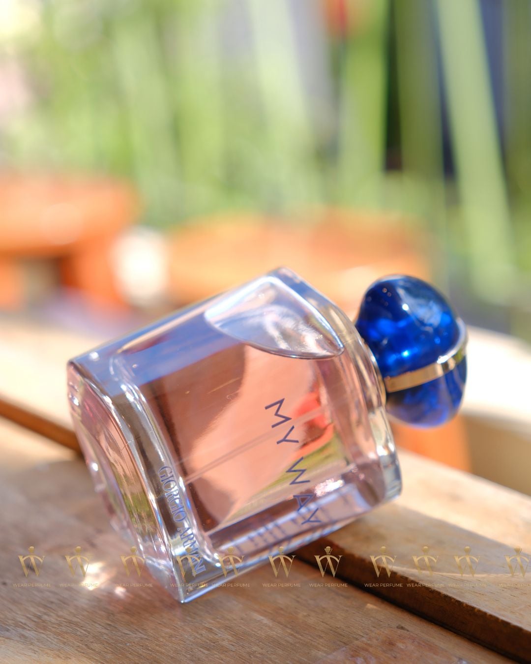 Vẻ ngọt ngào say đắm, bồng bềnh của My Way nhưng rất thực, lãng đãng xung quanh bầu không khí, khiến cho nét đẹp ban đầu hơi kiêu kỳ giờ đây trở nên gần gũi đến lạ. Nắp màu xanh và vàng là một lá bùa hộ mệnh được thiết kế để mang theo bên mình bất cứ nơi đâu. Màu xanh lam là màu chung hợp nhất tất cả chúng ta. Nó được bao quanh bởi một chiếc nhẫn vàng có đóng dấu chữ ký của Giorgio Armani, biểu tượng của một quỹ đạo độc đáo sáng lên theo mỗi cuộc gặp gỡ trên đường đi.
