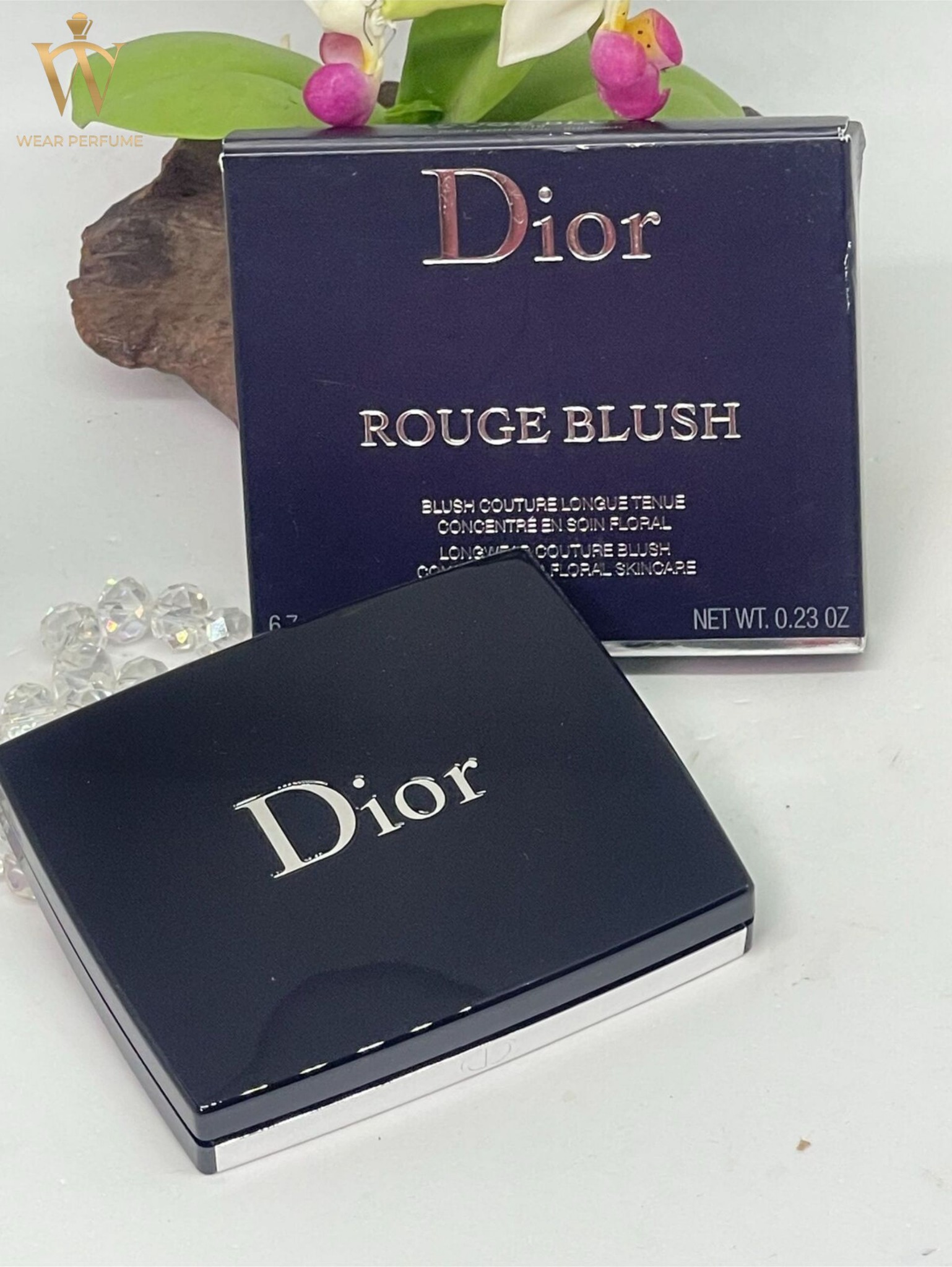 Thiết Kế của Má Hồng Dior Rouge, như thường lệ của thương hiệu, hét lên sự sang trọng. Vỏ hải quân đẹp bóng mượt và sang trọng. Nó đi kèm trong một túi nhung mềm. Cùng logo chữ ký đóng dấu trên nắp. Có một tấm gương nhỏ ở bên trong và một má hồng siêu xinh đẹp.
