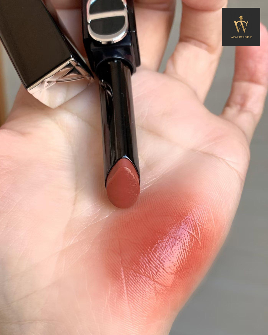 Son thỏi Dior On Stage 168 Copper Attraction Shine được hoàn thiện với kết cấu mượt nhẹ, cho khả năng lên màu rõ nét và ổn định ngay từ lần thoa đầu tiên. Lớp son bám môi tốt, giữ sắc đỏ gạch trầm ấm lâu trôi, hạn chế tình trạng xỉn màu hay loang son trong suốt nhiều giờ sử dụng.